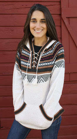 Artesania Hooded Peruvian Themed Alpaca Blend Sweater.